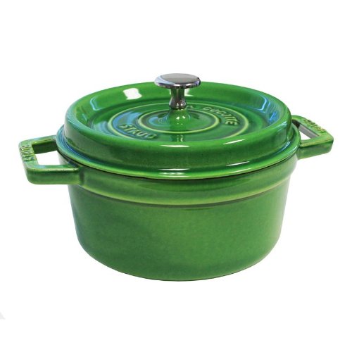 Brass or Nickel plated knobs that are warmth resistant up to 500ºF.Made in France and developed in conjunction with France?s most celebrated, world fashionable chef Paul Bocuse.Tight fitting flat lid features self-basting spikes for continuous, even distribution of juices all the manner through cook dinnering, so food is moist and flavorful..Smooth backside is suitable to be used on any prepare dinnering floor, including induction..Interior black matte enamel finish produces a natural non stick floor that's extra immune to scratches and chips. It won?t discolor or rust and never needs seasoning.. The Staub ride begins in Alsace, France. Rich in historical past, food, and craft, it is a region fashionable for hearty one-pot recipes. Staub has been producing one of the perfect cast-iron products for skilled and aspiring prepare dinners seeing that 1974. Staub’s French oven is a timeless standby for stews, roasts, soups, casseroles and different one-pot classics. Staub has perfected this tradition in our signature "La Cocotte" French Oven, the collection of one of the most world's perfect chefs. La Cocotte moves superbly from the stove to your table.. ... Read more Staub 8 7/8 Quart Round Cocotte, Pesto